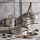 Juego de Ollas 10 pzs, Anodizado Duro, antiadh cerámico. Inducción, color Agave. KitchenAid